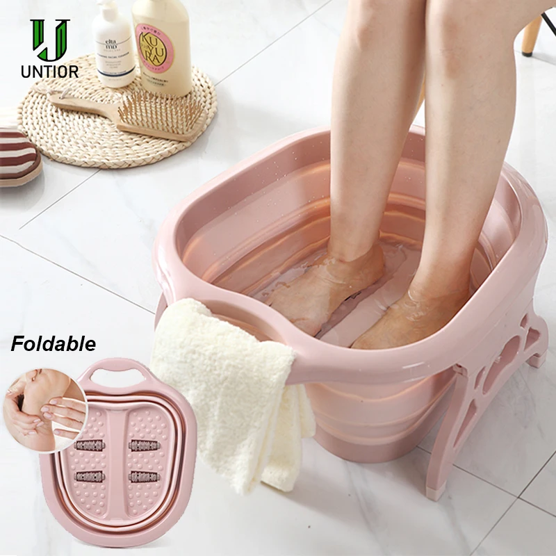 Review Top Foldable Footbath plain foaming massage bucket Plastic foot bath basin large heightening footbath f