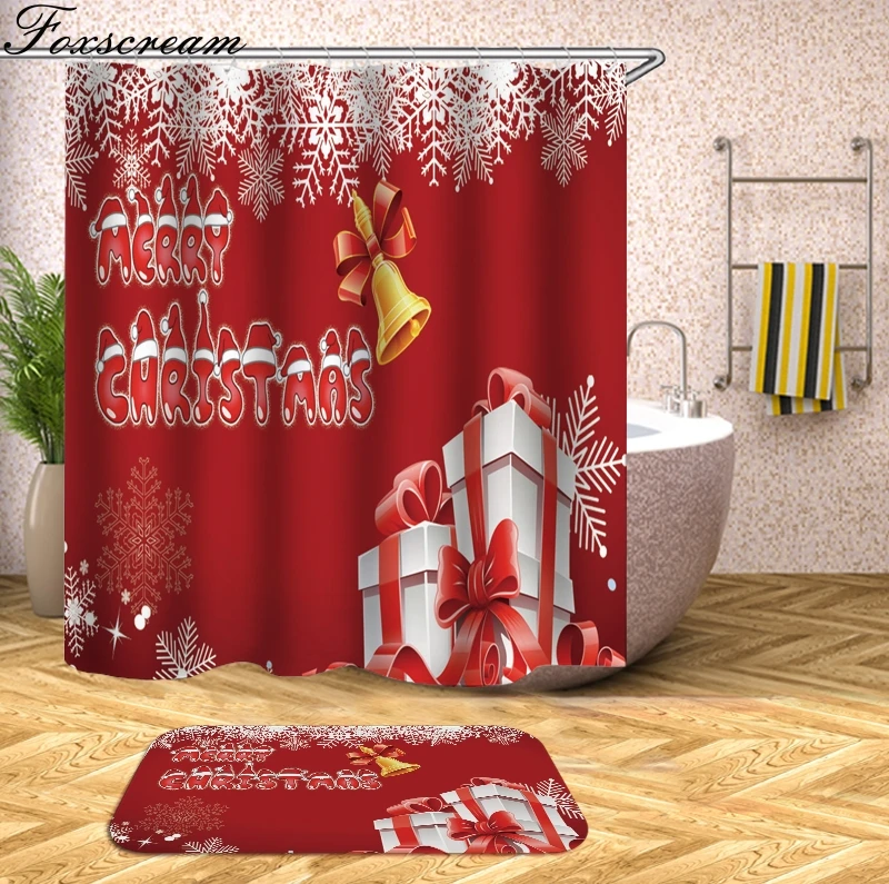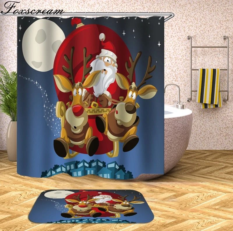 Best Quality Merry Christmas Shower Curtains Santa Claus Shower Curtain Christmas Waterproof Bathroom Shower Bat