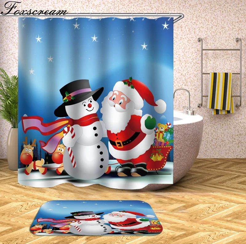 Merry Christmas Shower Curtains Santa Claus Shower Curtain Christmas Waterproof Bathroom Shower Bat