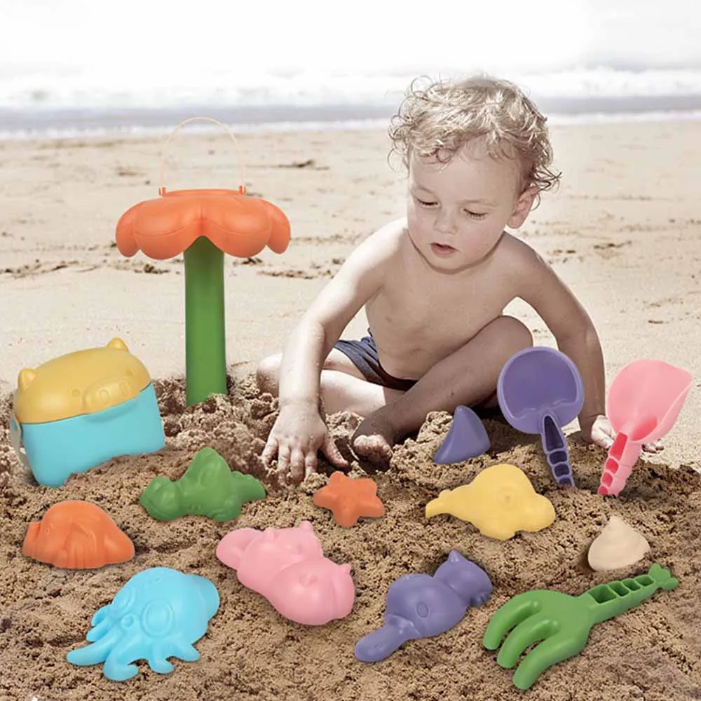 HOT Sale 16 Pcs Portable Baby Beach Toys Mesh Bag Bath Play Set Digging Shovel Tools Playing Toy Mold Cassia