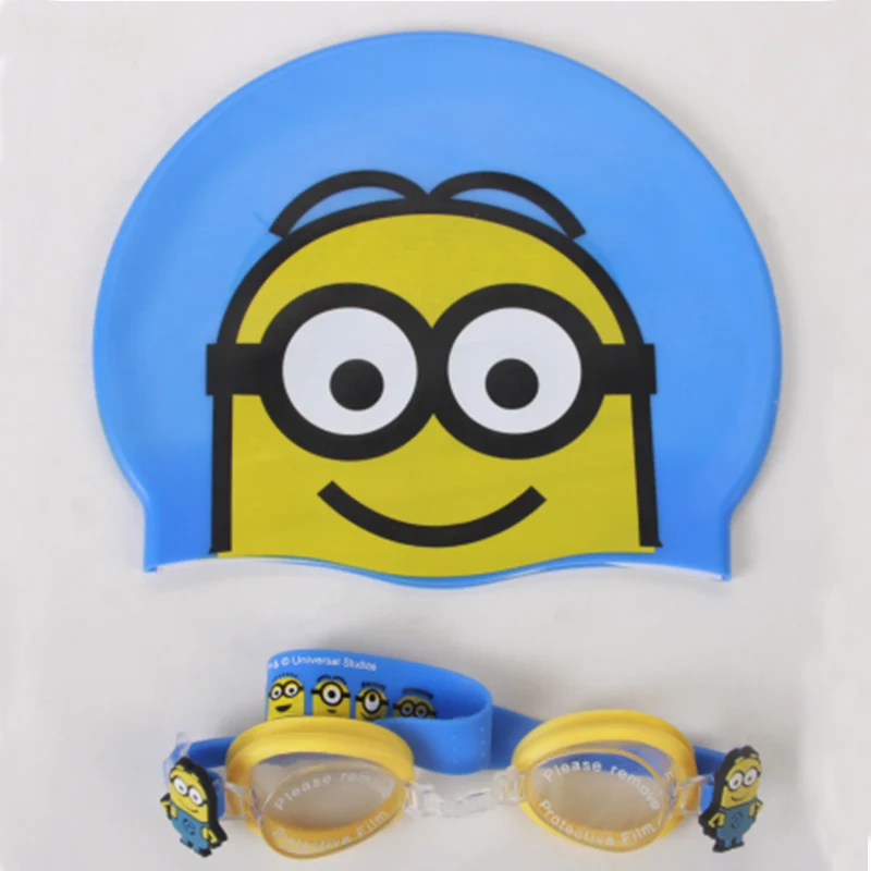 Cute Cartoon Kids Children Fabric Swimming Cap+swim goggle Swim Pool Beach Protect Ears Hair Bathin
