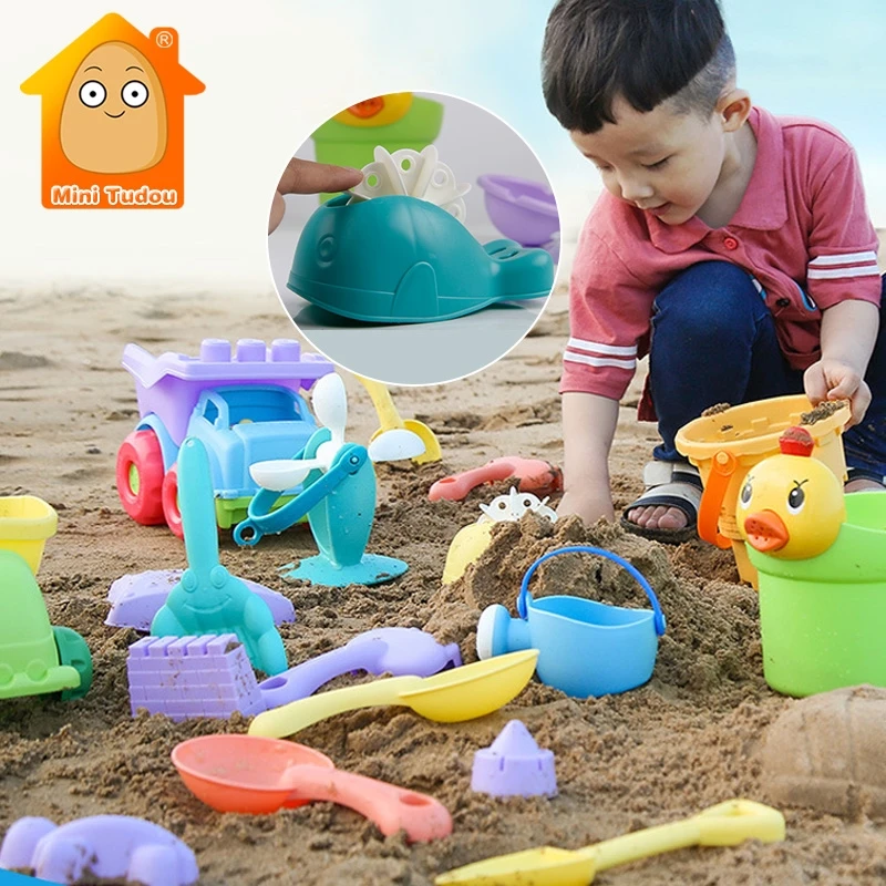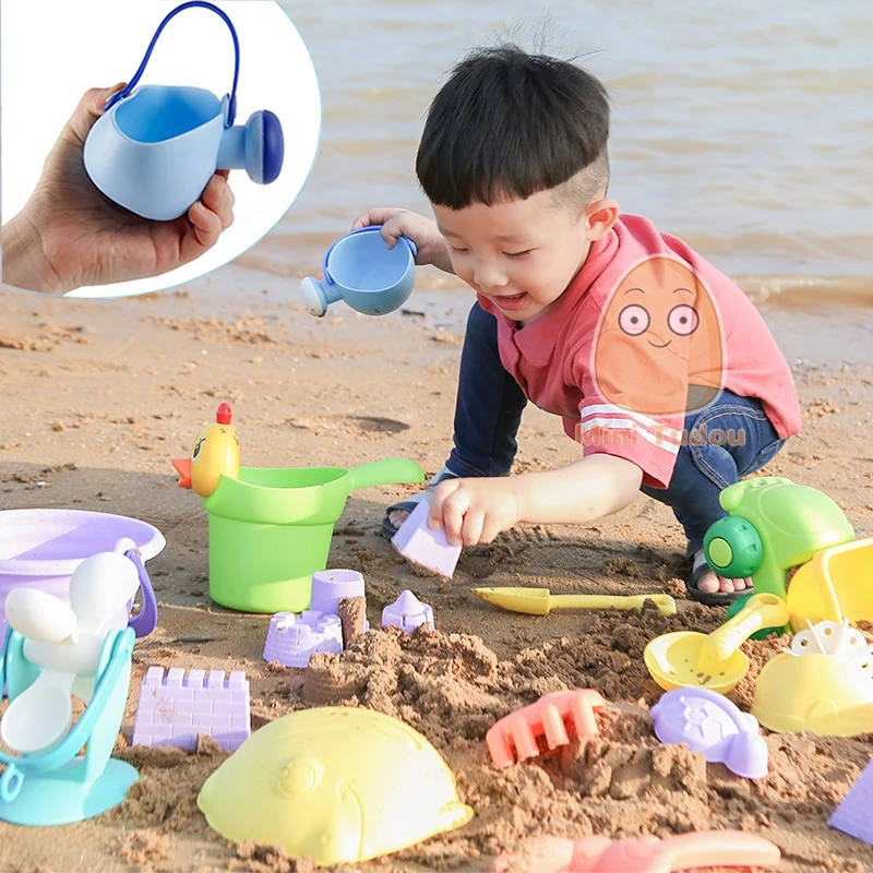 Summer Silicone Soft Baby Beach Toys Kids Mesh Bag Bath Play Set Beach Party Cart Ducks Bucket Sand