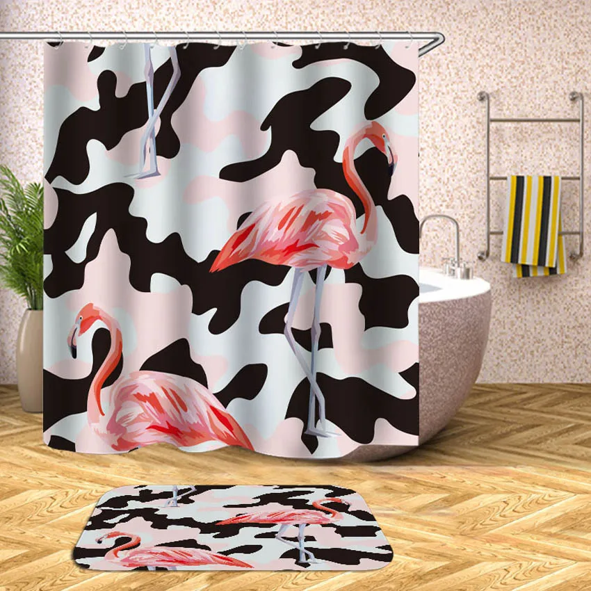 Best Floral Flamingo Shower Curtain Flowers Print Waterproof Bath Curtains for Bathroom Bathtub Bathing