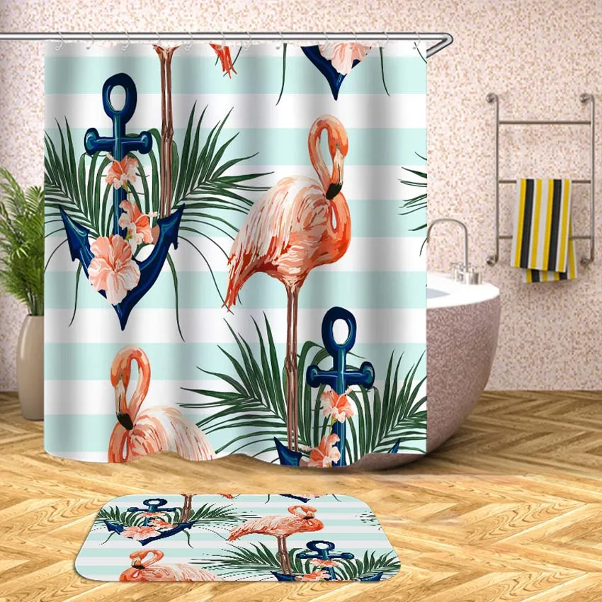 Floral Flamingo Shower Curtain Flowers Print Waterproof Bath Curtains for Bathroom Bathtub Bathing