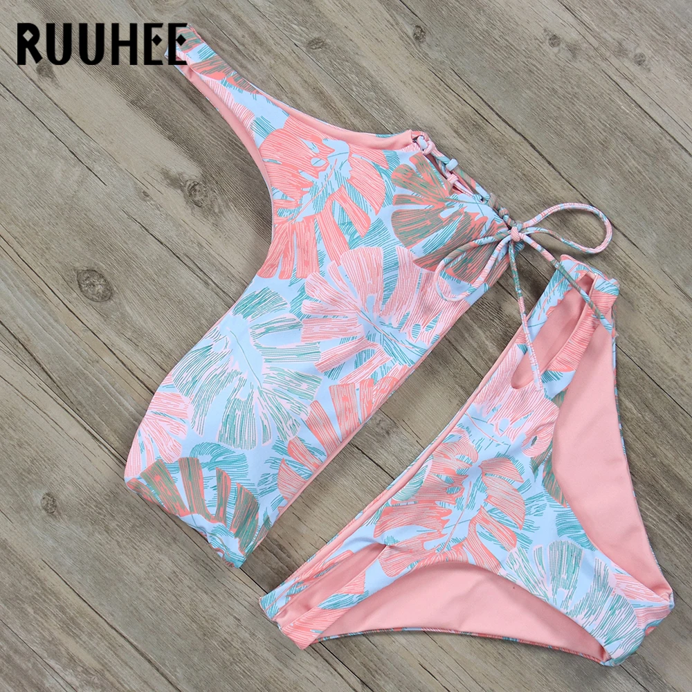 Best Quality RUUHEE Bikini Set Swimwear Women One Shoulder Swimsuit Push Up 2018 Bikini Bathing Suit Female Beac
