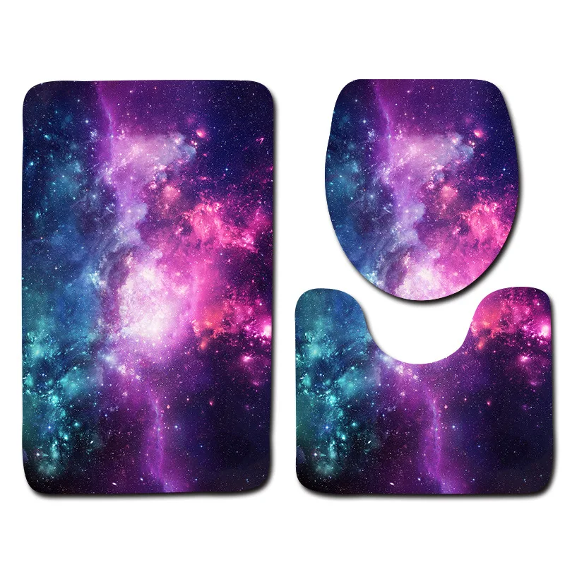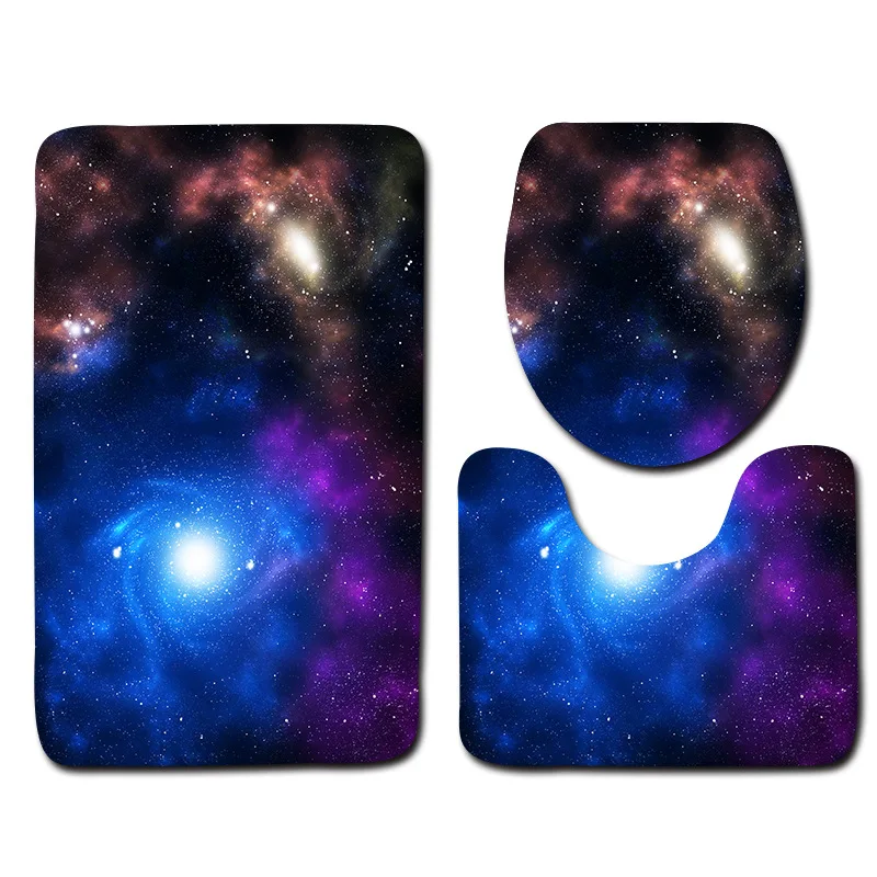 Hot Sale Non-Slip Bathroom Mat Carpet 3pcs Set Galaxy Space Bath Mat with Toilet Seat Cover tapete para banh
