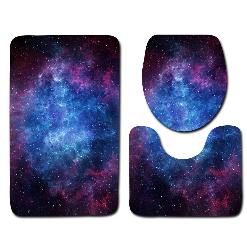 Non-Slip Bathroom Mat Carpet 3pcs Set Galaxy Space Bath Mat with Toilet Seat Cover tapete para banh