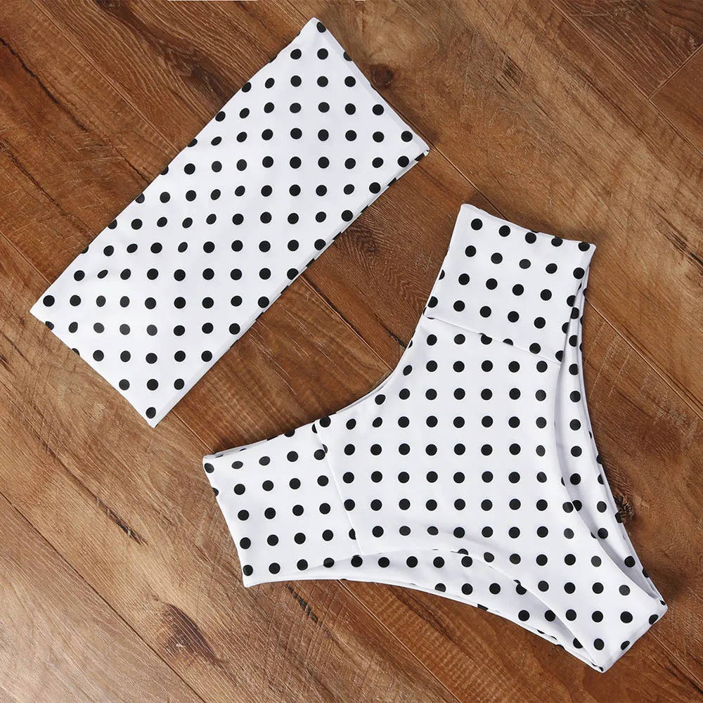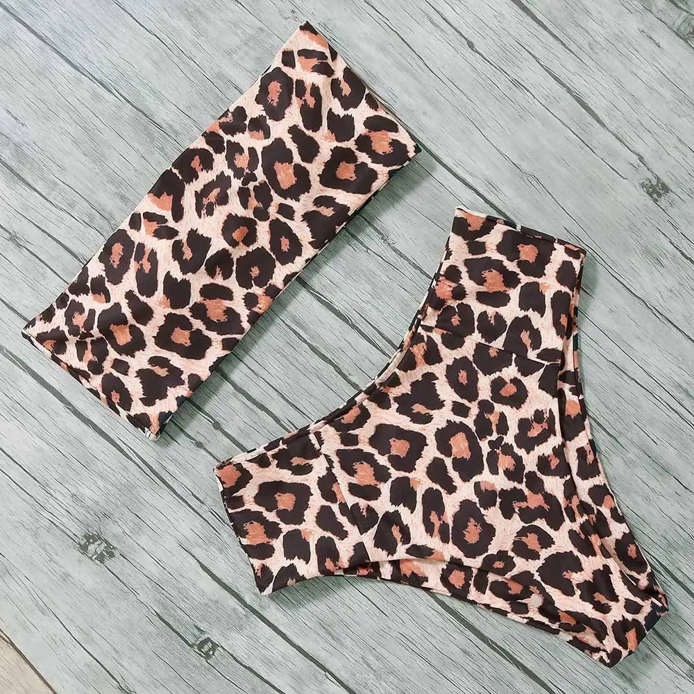 HIGH QUALITY tropical print swimsuit 2019 high waist bikini set bandeau bikini women strapless swimwear female b
