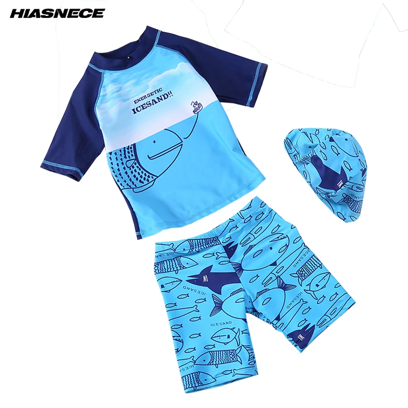 BEST QUALITY Boy Swimwear Two Piece Shirt Boxer Shorts Swimming Cap Cartoon Print kids Children Baby Swimsuit Ba